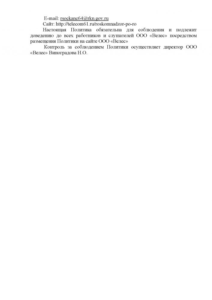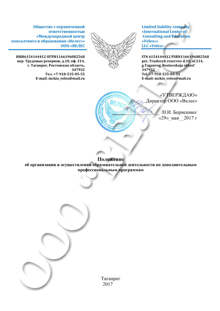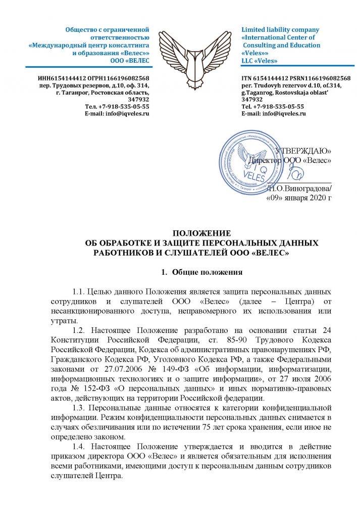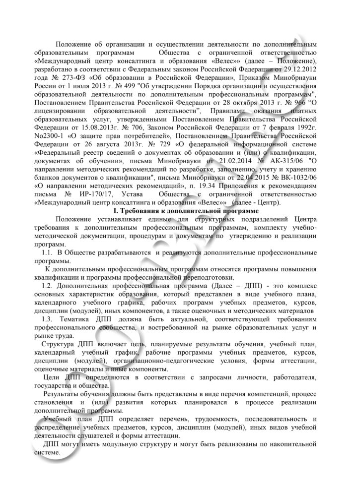 Положение о структурном подразделении “Отдел образования и обучения” ООО “Велес””