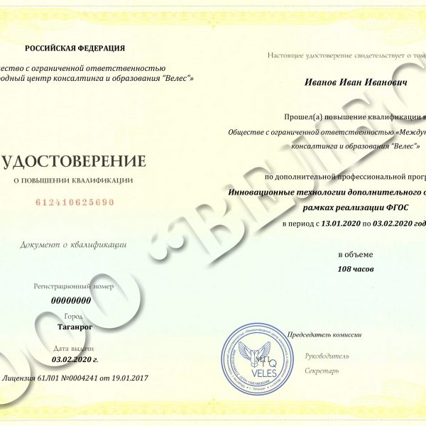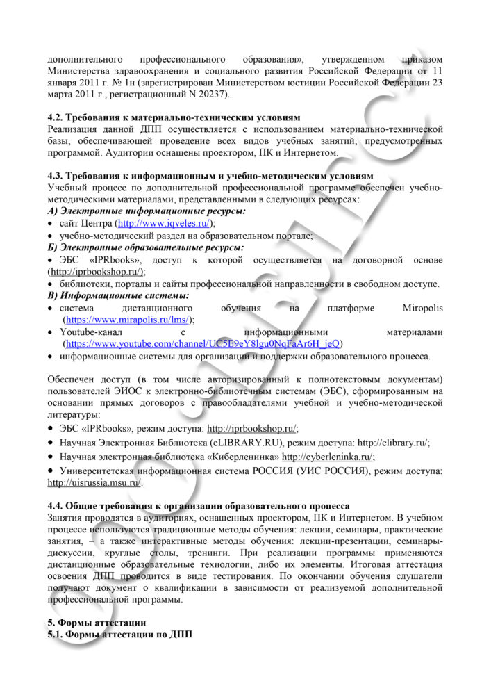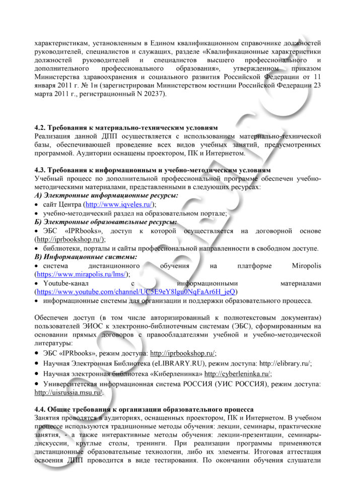 Реализуемые уровни образования: Дополнительное профессиональное образование