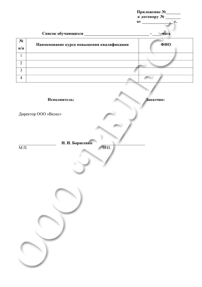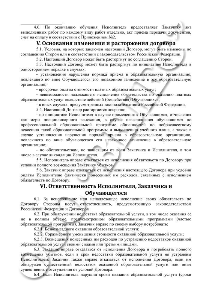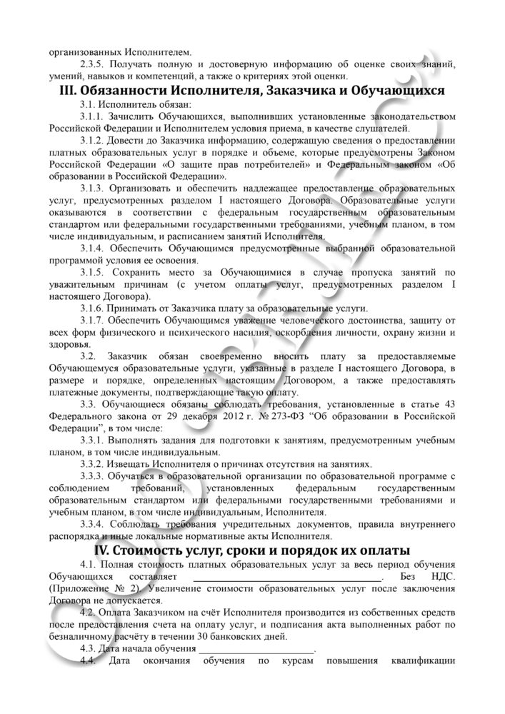 Образец договора об оказании платных образовательных услуг