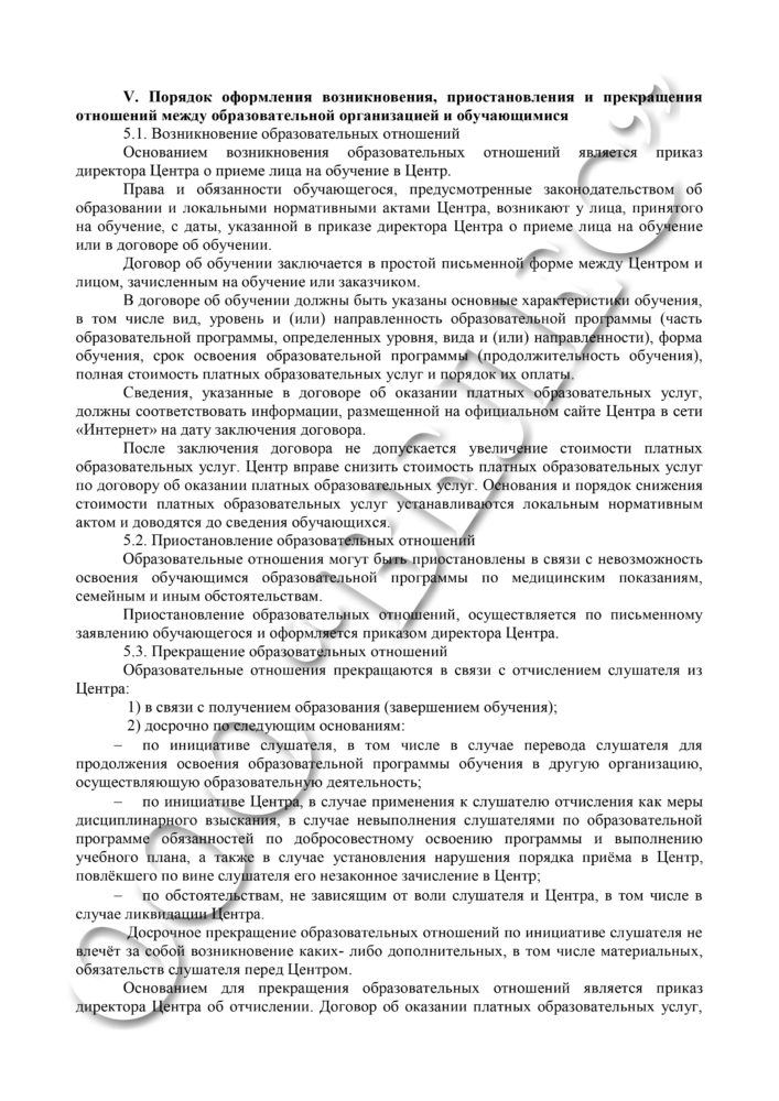 ППравила оформления возникновения, приостановления и прекращения отношений между образовательной организацией и обучающимися