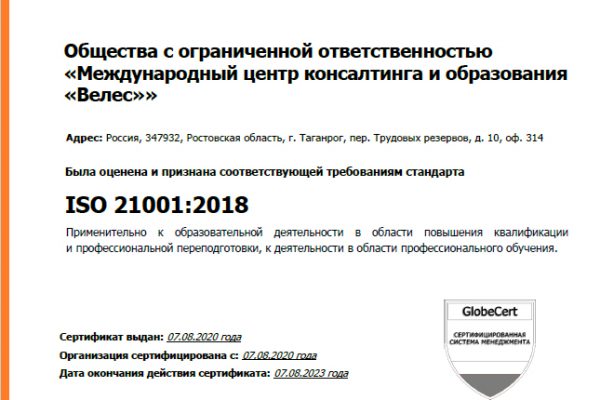 Cтандарт ИСО 21001:2018